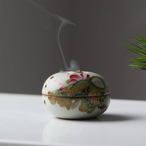 Mount Fuji Ceramic Incense Fireplace & Wooden Coaster