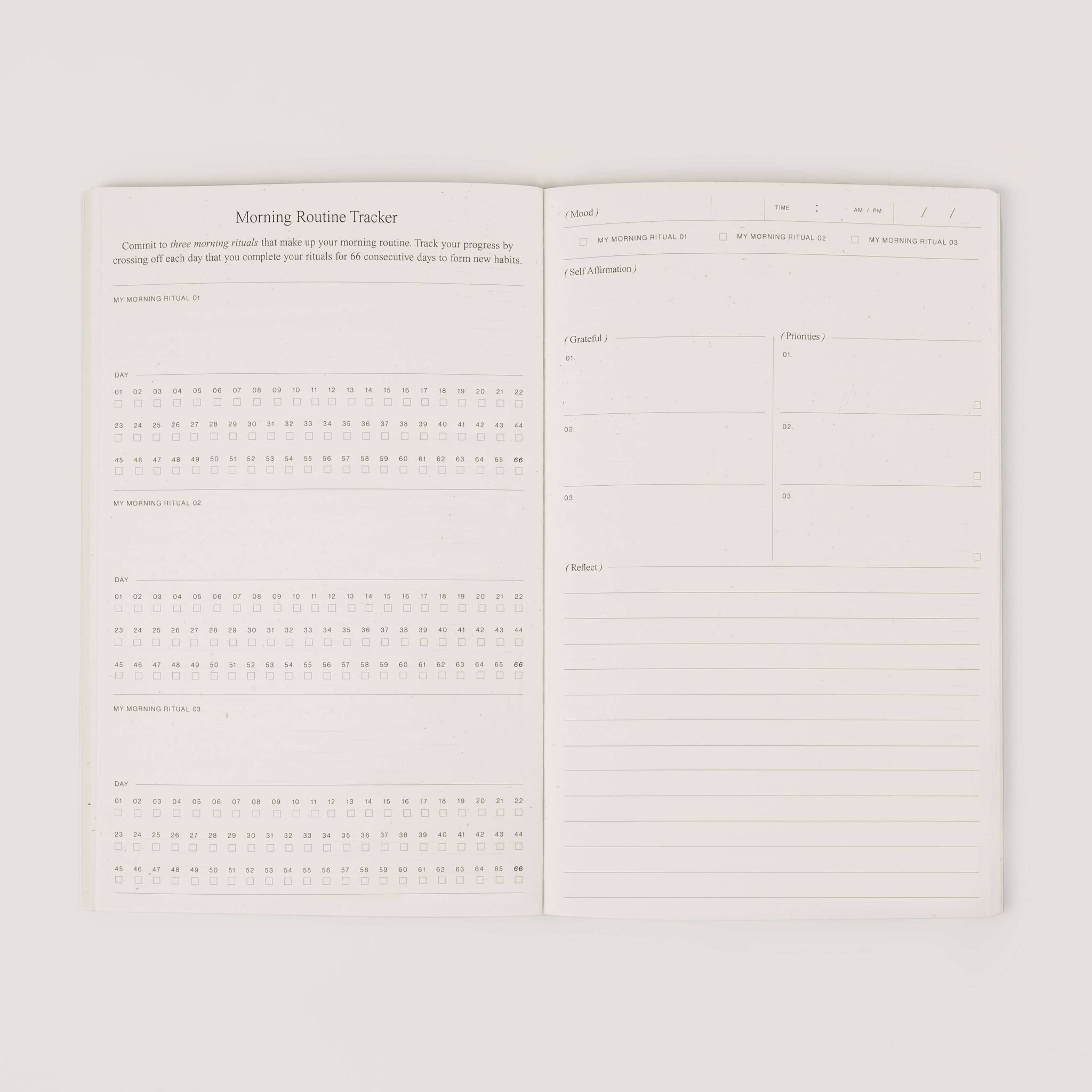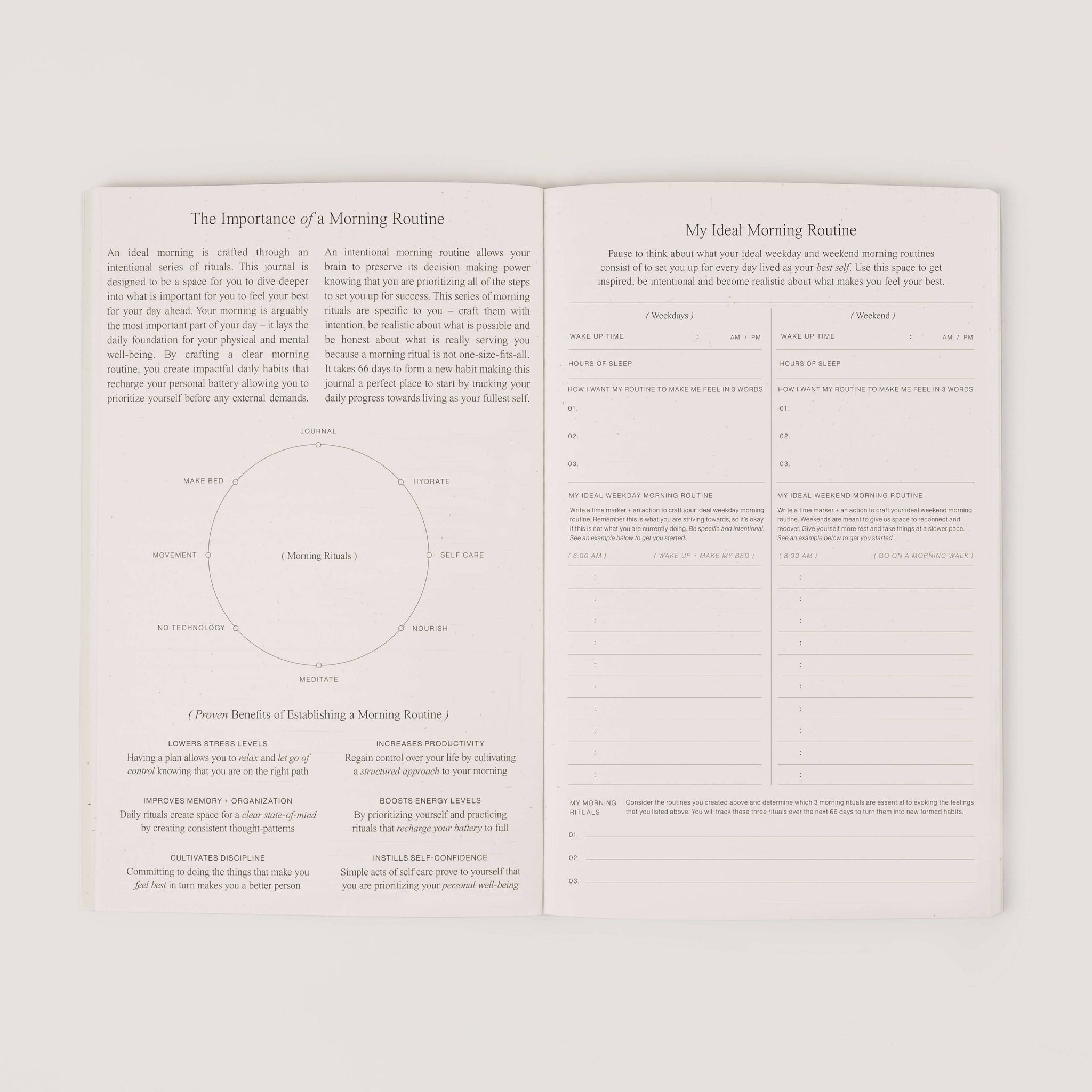 A 66 day journal to create a morning routine that becomes a daily habit.