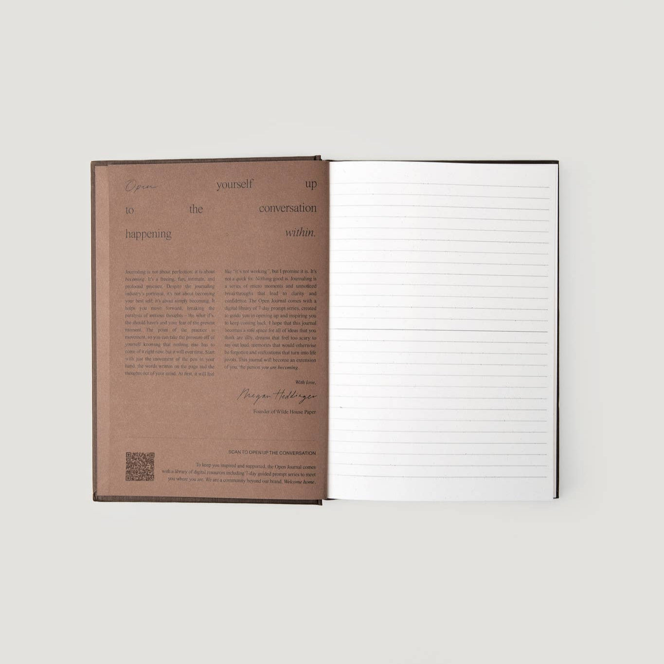A lined journal designed to inspire you to journal with free library of digital journaling courses from Wilde House Paper.